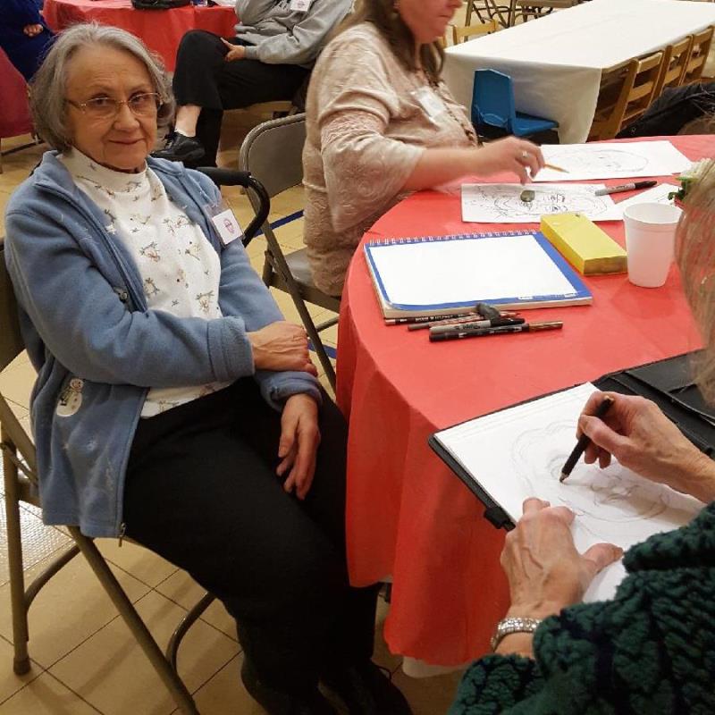 Everyone gives caricature drawing a try.